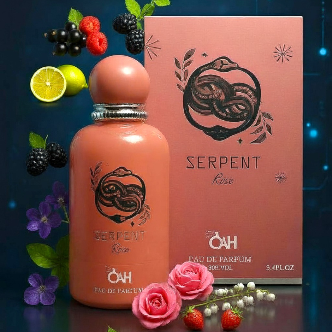 Serpent Rose is a captivating floral-fruity fragrance that blends freshness, sensuality, and depth. It opens with a vibrant burst of blackcurrant, lemon, and bergamot, enriched by juicy blackberry and raspberry, creating a bright yet seductive introduction.